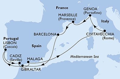 Civitavecchia, Genoa, Marseille, Barcelona, Gibraltar, en 11 jours au départ de Civitavecchia Italy à bord du Msc Poesia