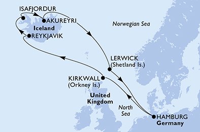 Hamburg, Kirkwall, Reykjavik, Isafjordur, Akureyri, Ler en 11 jours au départ de Hamburg à bord du Msc Preziosa