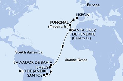 Lisbon, Funchal, Santa Cruz de Tenerife, Salvador, Ilh en 15 jours au départ de Lisbon Portugal à bord du Msc Preziosa
