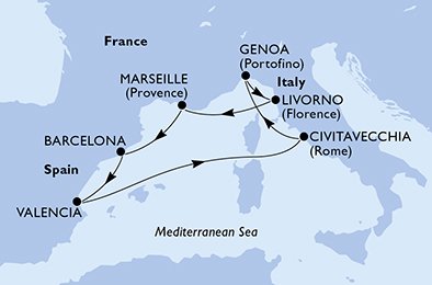 Marseille, Barcelona, Valencia, Civitavecchia, Genoa, L en 8 jours au départ de Marseille à bord du Msc Magnifica